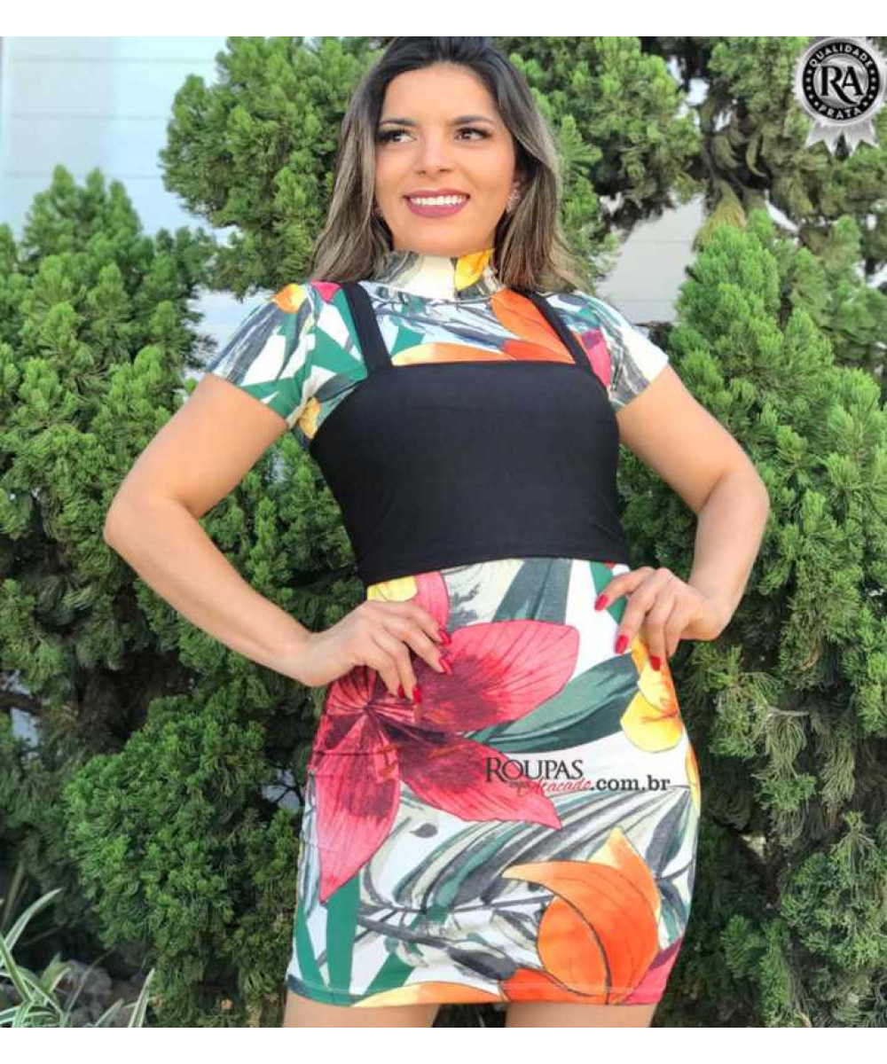 Vestido Com Cropped Sobreposição, é confeccionado no tecido suplex, tecido leve e macio, confortável e com muita elasticidade, que se ajusta ao corpo, além de estampas lindas, com a combinação do vestido e o crooped fazendo a sobreposição que é tendência entre as blogueiras e por ser um look completo. Compre para revender.